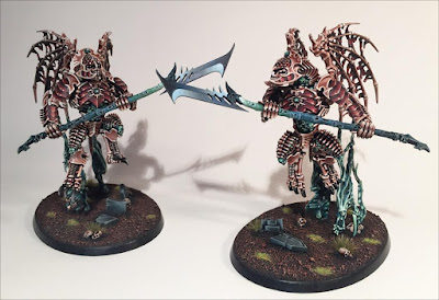 The painting and color choices on these are great. The red and bone go really well together and are perfectly complemented by the ghostly green colors. The amount of contrast between the darks and the lights on each color is pretty insane, and it's all done so perfectly. It's definitely a stylized look but it looks great and makes the models pop and grab your attention. The level of intensity with the colors, and reflective highlights, and the contrasts between light and dark within such small spans are what secured these guys the second place spot.